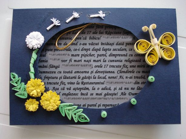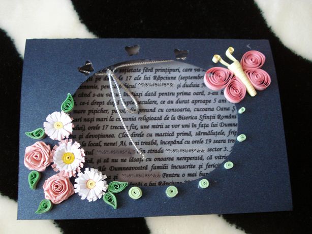 Descoperisem recent tehnica qulling si eram tare entuziasmata de ce poti face din hartie cu putina imaginatie si cu multa rabdare, asa ca am ales sa-mi fac singura invitatiile de nunta. Cum nu ma puteam decide asupra unui singur model si eram tare nerabdatoare sa mai incerc si: