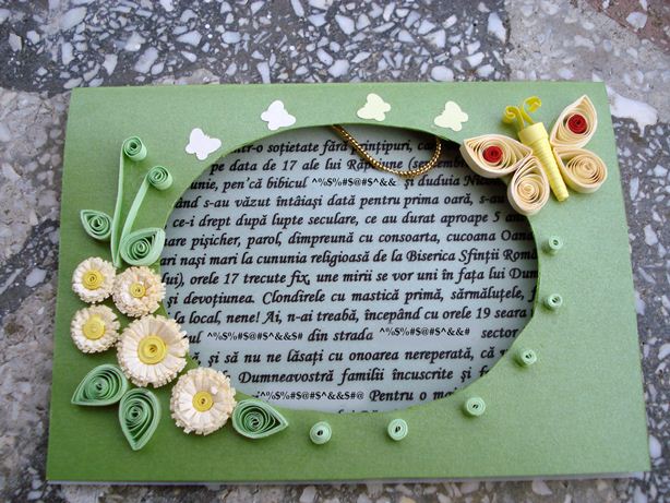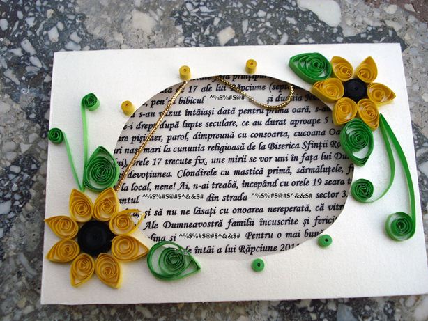 Descoperisem recent tehnica qulling si eram tare entuziasmata de ce poti face din hartie cu putina imaginatie si cu multa rabdare, asa ca am ales sa-mi fac singura invitatiile de nunta. Cum nu ma puteam decide asupra unui singur model si eram tare nerabdatoare sa mai incerc si: